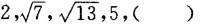 观察数列,题干中第二、三项都有根号,则数列全部变成带根号的,则根号下的数字分别为4、7、13、25。作差后得到公比为2的等比数列3、6、12,因此下一项根号下数字应为24 + 25 = 49,答案为A。