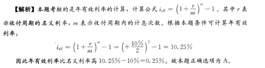 某借款年利率为10%,半年复利计息一次,则该借款年有效利率比名义利率高( )。A.0.25% B.0.20% C.0.225% D.2.64%