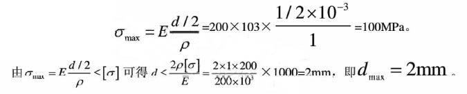钢丝绕在圆筒上时,钢丝处于纯弯状态,中性层的曲率半径等于卷筒的半径,即ρ=1m,可得钢丝中的最大应力为