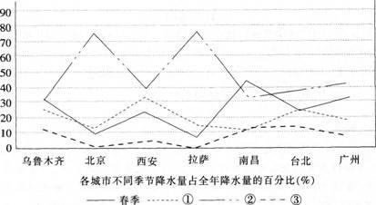下图是我国主要城市不同季节降水相对值折线图 图中的①②③与季节相对应的是( )。查看材料A.①—夏季②—秋季③—冬季 B.①—冬季②—夏季③—秋