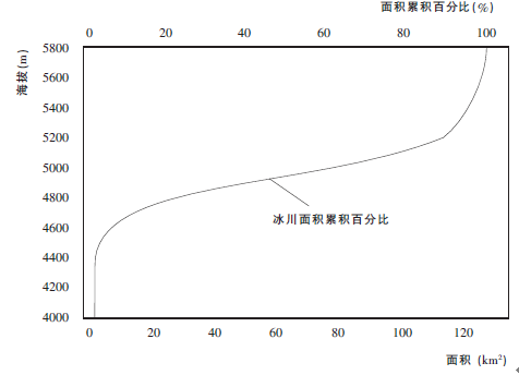 下图为祁连山冰川面积随海拔高度变化的统计图,读图完成第下题。 上述区域冰川面积最大的主要成因是( )。A.平均气温最低 B.植被覆盖率最高 C.山