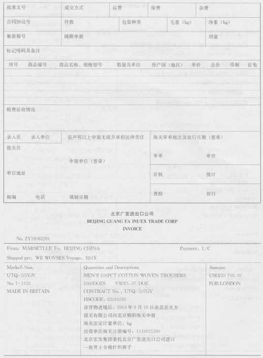 公共题干: “进口口岸”栏应填( ). A.青岛海关 B.广州海关5