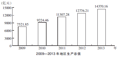 2010—2013年GDP增长率分别是 9224.46/7521.85-1≈22.64%、 11307.28/9224.46-1≈22.58%、12776.21/11307.28-1≈13.0%、12.5%。 由此可知2010年最快。