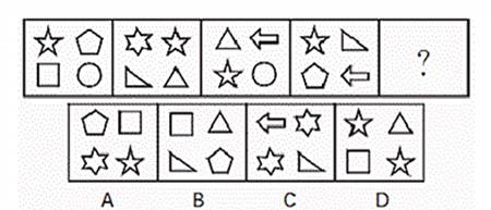 每个方框中的四个小图形的形状都是互不相同的,且每个方框中都有一个五角星,据此确定本题答案为A。