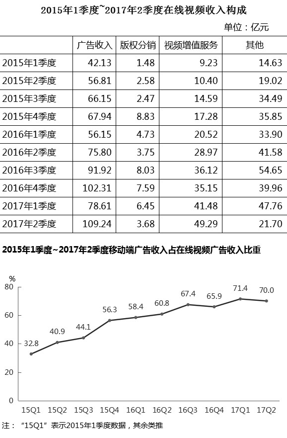 2017年上半年,在线视频收入: