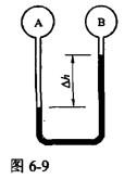 如图6-9所示,A、B两管平齐,里面盛满水,下面的U形管里充有水银,水银柱高差为