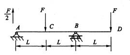 图示外伸梁,在C、D处作用相同的集中力F,截面A的剪力和截面C的弯矩分别是: