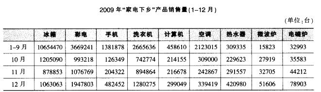 1-9月“家电下乡”产品销售量从高到低,列第四位的是()。