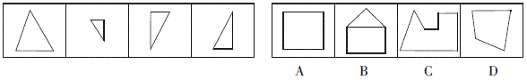 题干第三个与第四个图形组成一个正长方形,第二个图形与长方形组合后再与第一个图形组合可得到C。如图所示:[img]/upload/tiku/289/9761556_1.gif[/img]