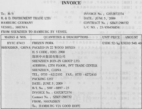 某公司出口一批冻猪肉,请根据所提供的单据,判断《出境货物报检单》相关栏目填制的正