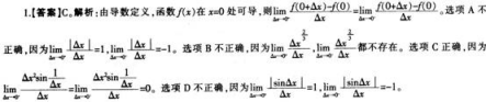 下列函数在χ=0处可导的是( )。