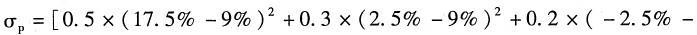 曹先生资产组合的收益率= E( rp)=0.5* 17.5% +0.3*2.5% +0.2*(-2.5%)=9%