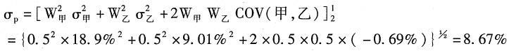 根据资产组合的权重W甲=W乙=0.5和两种股票见的协方差,我们可以根据公式算出资产组合的标准差。