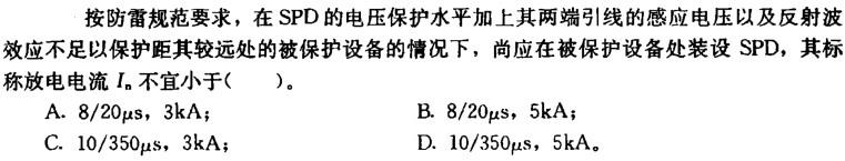 为防雷击电磁脉冲,在建筑物低压配电系统为220/380V三相配电的TN—S系统 中,选择和安装电涌保护器(SPD)时,对下列各条作出正确的选择。