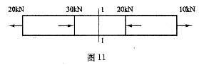 如图11所示轴向拉压杆,1-1截面的轴力N的数值为( )。A、20kN B、-30kN C、10kN D、-10kN