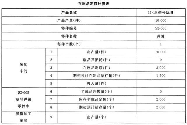 某玩具厂生产11-10型号玩具,年产量为10000件,每件11-10型号玩具需要S2-005型号弹簧1个。该厂年初运用在制品定额法来确定本年度车间的生产任务,相关信息及数据如下: