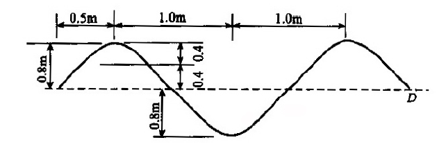 如下图所示,波浪的波高为( )。 A.0.8m B.1.6m C.1.2m D.0.4m