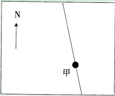 下图中的斜线示意晨昏线。甲地经度为15°E。假定西五区区时为6日0时20分。