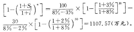 已知某出租公寓的年有效毛租金收入为100万元,年运营费用为30万元,如果租金收入和运营费用在未来30年的经营期内分别以每年3%和2%的速度增长,折现率为8...