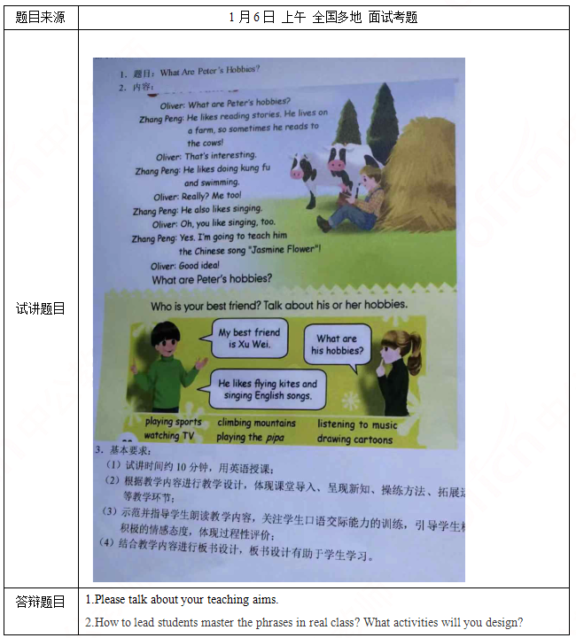 1.Please talk about your teaching aims.2.How to lead students master the phrases in real class? What activities will you design?