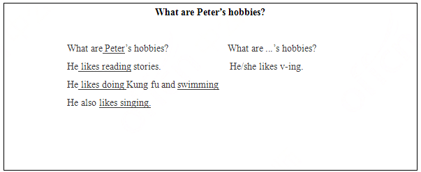 1.Knowledge aim:Students will master some phrases about hobbies and the sentence structure about how to talk about hobbiesAbility aim:Students will improve their speaking ability in talking about hobbies.Emotional aim:Students will be more confident in speaking English.Students will arouse their interest in learning oral English.2.Due to the limited time I design few activities. In real class. I will give students more example to understand the function of the sentence structure. At the same time, more practice will be used such as the mechanical drilling: filling in the blanks with the correct form of verbs and make up sentences with given words. And meaningful drilling describe the pictures and so on.