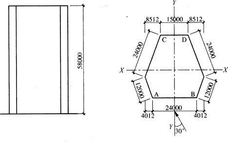 某15层框架一剪力墙结构,其平立面示意如图所示,质量和刚度沿竖向分布均匀,对风荷