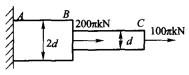 圆截面杆ABC轴向受力如图,已知BC杆的直径d = 100mm,AB杆的直径为2d。杆的最大的拉应力为: