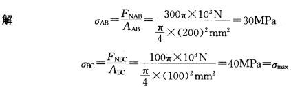 圆截面杆ABC轴向受力如图,已知BC杆的直径d = 100mm,AB杆的直径为2d。杆的最大的拉应力为: A. 40MPa B. 30MPa C. 80MPa