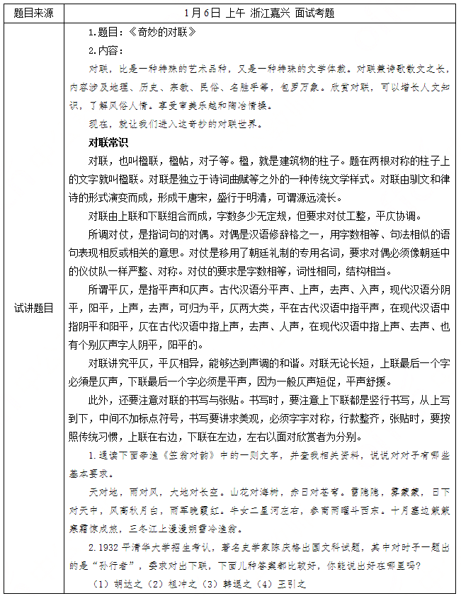 高中语文《奇妙的对联》 一、考题回顾 二、考题解析 【教学