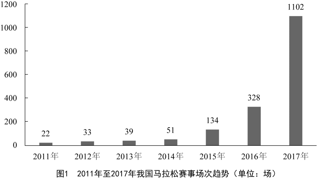 2017年全国举办马拉松赛事达1102场,其中,中国田径协会举办的A类赛事223