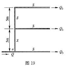 三层供水管路,如图19所示。各管段的阻抗S皆为106s2/m5,层高均为5m。设