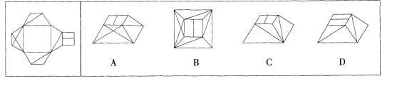 下面左图给定的是纸盒外表面,下列哪一项能由它折叠而成?()。