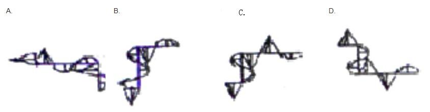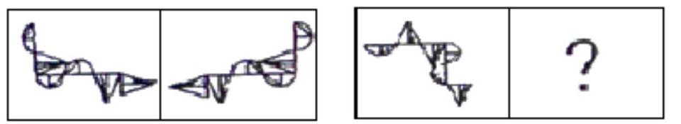 下图的图形折叠后将成为四个图形中的一个,请选出折叠后的正确图案。