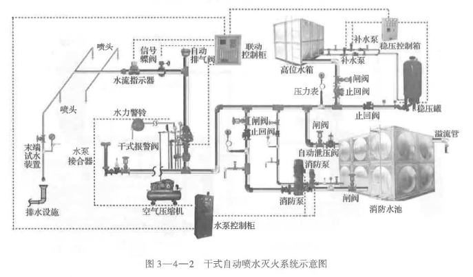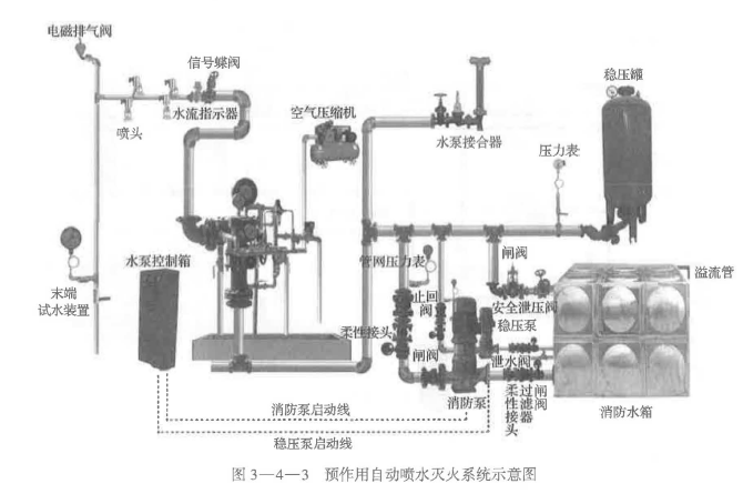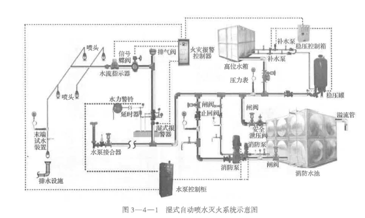 2018新版教材P148 闭式自动喷水灭火系统按照系统的用途和组件配置,通常分为湿式系统(图3-4-1)、干式系统(图3-4-2)和预作用系统(图3-4-3)。