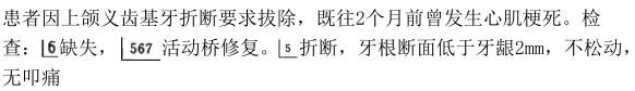 73.此病人理想的拔牙时间是A.立即局麻下拔除牙根B.2个月后再拔牙C.4个月后就可以拔牙D.1年后才能拔牙E.3年后拔牙为好