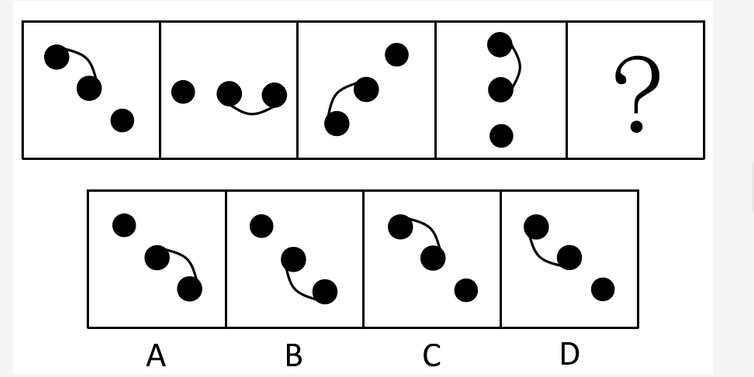 从所给的四个选项中,选择最合适的一个填入问号处,使之呈现一定的规律性: