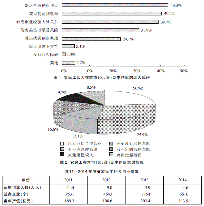 图2农民工在本市(区、县)自主创业意愿情况2011—2014年某省农民工回乡创业情况能够从上述资料中推出的是: