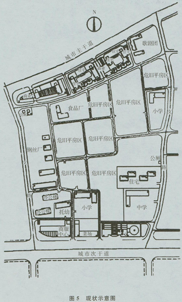【问题】根据现状条件(如图5所示)及一般危改居住小区的规划设计要求,提出需要调整和增加的内容。