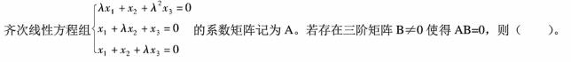 A.λ=-2 且丨B丨=0 B.λ=-2且丨B丨≠0 C.λ=1 且丨B丨=0 D.λ=1且丨B丨≠0A.λ=-2 且丨B丨=0 B.λ=-2且丨B丨≠0