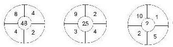 解题指导: (8-2)*(4+4)=48,(9-4)*(3+2)=25,(10-5)*(2+1)=15。故答案为D。