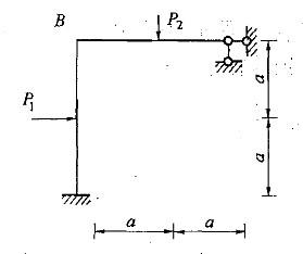 图示结构,EI=常数,欲使结点B的转角为零,比值P1/P2应为: