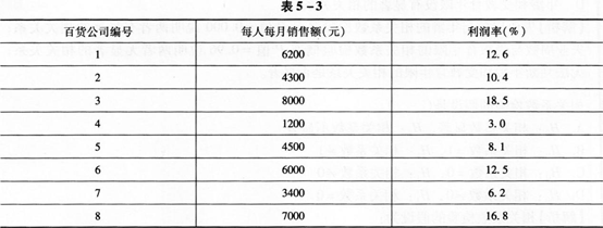 现有八家百货公司,每个公司人均月销售额和利润率资料如表5—3所示。