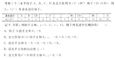 ACE。交互作用BXC的平方和S B×C=S8+S11误差列占了5列,每一列的自由度为2,因此,误差平方和的自由度fe = 5X2=10。