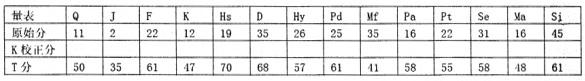 HS的K校正分为HS的原始分加上0.5K分,即19+0.5*12=25 求助者的效度量表Q原始分11分,小于22分,提示临床量表可信。L量表小于十可以信任测验结果,F量表得分22分,得分较高,提示精神并程度越高,或者有诈病倾向。 根据量表显示,大于六十分的有HS(疑病量表)、D(抑郁量表)、Pd(社会病态)、Si(社会内向)。 E、N量表均大于61.5,求助者的人格特点为典型外向,典型不稳,属于胆汁质。 SDS标准分为65,标准常模53分,在63-72之间,属于中度抑郁。 求助者大于2的因子有躯体化,说明主观感觉身体不适,焦虑2.5有焦虑症状,其中包括睡眠和饮食,大于2说明睡眠质量较差,饮食也差。抑郁3.4说明悲观苦闷和兴趣减退。 总分不属于维度分,排除A。