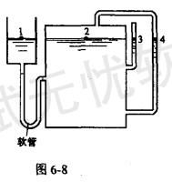 如图6-8所示,右侧水箱内为大气压强。 现将水箱封闭,升高左侧的水位调节器则1、2、3、4 水面关系有( )。 A. 1高于3、4 B. 4高于2 C. 1、