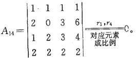 求A11+A12+A13+A14=( )。其中Alj为元素,alj(j=1,2,3,4)的代数余子式。