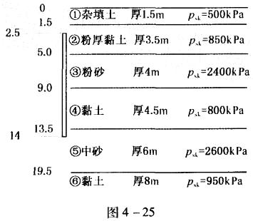 根据《建筑桩基技术规范》(JGJ 94—2008)第5. 3. 3条,混凝土预制桩单桩竖向极限承载力标准值的计算公式为:Quk = Qsk +Qpk =u∑qsikli +αpskAp式中,li为桩周第i层土的厚度。计算过程如下:①按规范图5.3. 3各层土极限侧阻力标准值qsik分别为:地表下6m范围内,顶部3.5m;按图中(A)线,qsik=15kPa。[img]/upload/tiku/191/2460811_1.jpg[/img][img]/upload/tiku/191/2460811_1_1.jpg[/img]