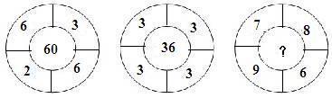 A. 225 B. 221 C. 114 D. 30B解题指导: (6+6)×(2+3)=60,(3+3)×(3+3)=36,(7+6)×(9+8)=22